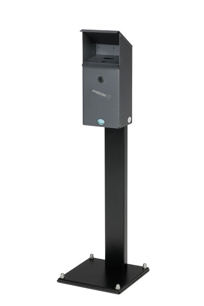 PROREGAL Großvolumiger E-Zigarettensammler Mit Schutzdach Standfuß 3,7 Liter HxBxT 113,5,3 x 31 x 31 cm Verzinkter Stahl Grau