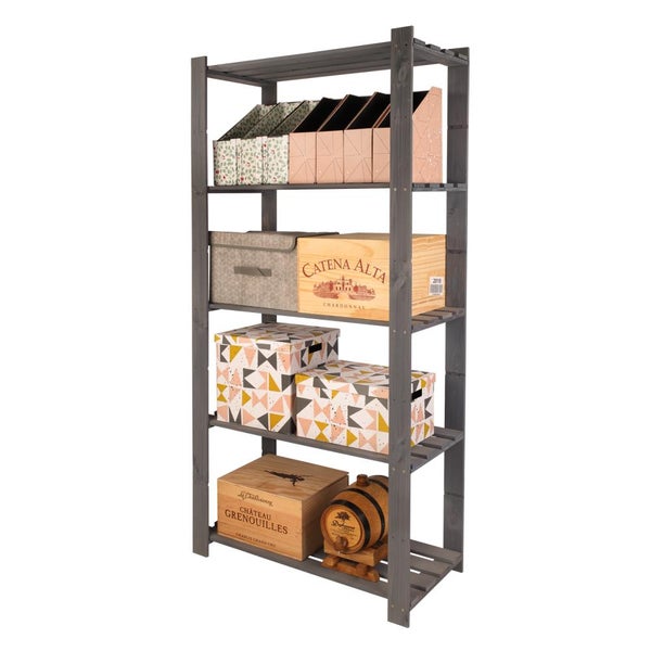 PROREGAL Holzregal Pinepeak HxBxT 170 x 80 x 38 cm 5 Fachboden 1,2 cm Dickes Kiefernholz Grau