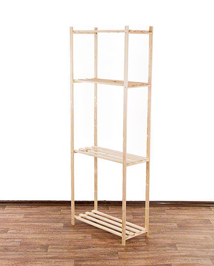Die leichten TIMBERCRAFT Regale sind aus Kiefernholz gefertigt und bieten eine Tragkraft von bis zu 35 kg pro Regal. Dank zusätzlicher Befestigungslöcher an den Beinen können Sie die Bodenspannweite individuell anpassen.