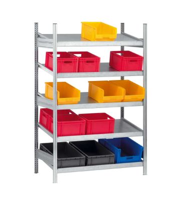 PROREGAL Kanbanregal Stecksystem T-Profil Grundregal HxBxT 200x130x120 cm 5 Ebenen Fachlast 200 kg Verzinkt