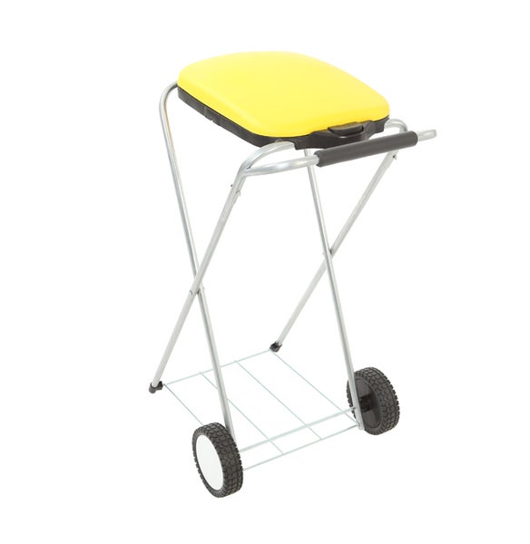 PROREGAL Klassischer Abfallsackständer Mit Deckel und Rollen HxBxT 83 x 44 x 56 cm Verzinkte Rohre Gelb