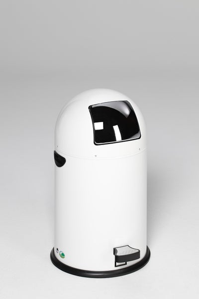 PROREGAL Klassischer Abfallsammler Mit Einwurfklappe Inneneinsatz Fußpedal 22 Liter HxBxT 64 x 40 x 40 cm Verzinkter Stahl Weiß