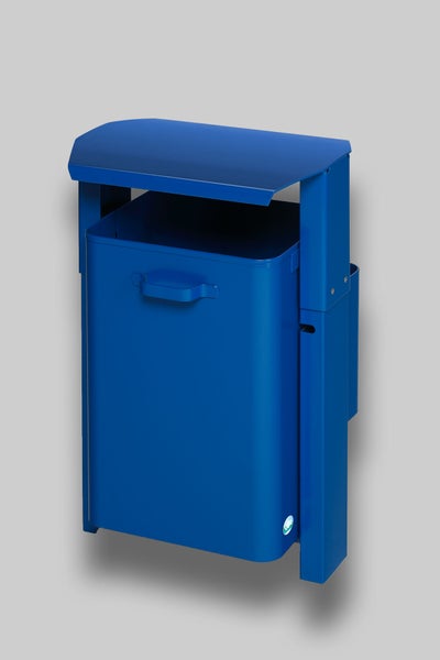 PROREGAL Klassischer Eckiger Abfallsammler Für Außenbereich Mit Dach Wand Oder Rohrbefestigung HxBxT 69 x 42 x 35 cm Blau