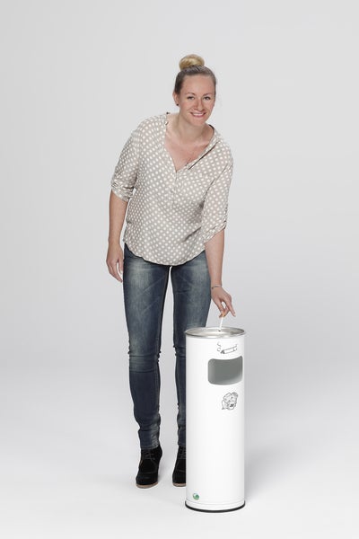 Der Abfallsammler verfügt über getrennte Fächer für Abfall und Asche, die eine saubere und hygienische Entsorgung ermöglichen. Die Asche wird sicher in einem separaten Behälter aufgefangen, um eine Vermischung mit anderen Abfällen zu vermeiden.