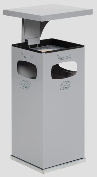 PROREGAL Kombiascher Mit Verstärktem Schutzdach 38 Liter HxBxT 91 x 39,5 x 39,5 cm Verzinkter Stahl Silber