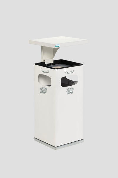 PROREGAL Kombiascher Mit Verstärktem Schutzdach 38 Liter HxBxT 91 x 39,5 x 39,5 cm Verzinkter Stahl Weiß