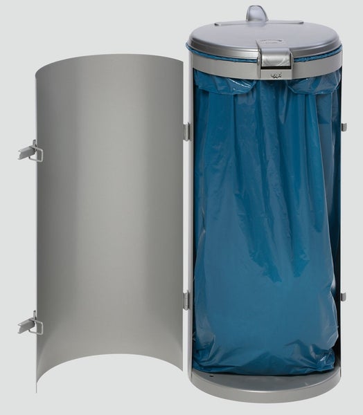PROREGAL Kompakter Abfallsammler Junior Mit Deckel Einflügeltür 35 cm Einfüllöffnung HxBxT 90 x 45 x 45 cm Stahl Silber
