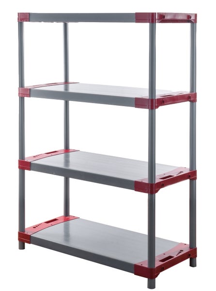 PROREGAL Kunststoffregal Grey Bear Low HxBxT 138 x 80 x 46 cm Fachlast 120 kg Grau/Rot