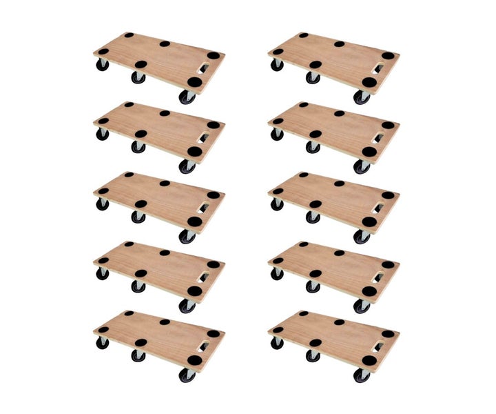 PROREGAL Mega Deal 10x Profi Transportroller mit 6 Rollen HxBxT 11 x 30 x 68 cm Traglast 300 kg Sperrholzplatte Braun