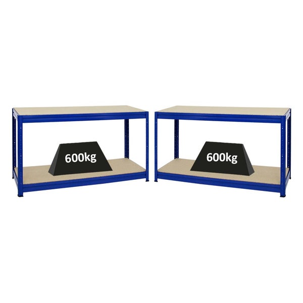 Die Werkbänke sind mittels eines Stecksystems ohne Werkzeug einfach und schnell aufzubauen. Pro Werkbank haben beiden Fachböden eine Stärke von 12 mm und sind in der Lage ein Gewicht von jeweils 600 kg zu tragen. Die Ebenen lassen sich in 50 mm Abständen in der Höhe verstellen.