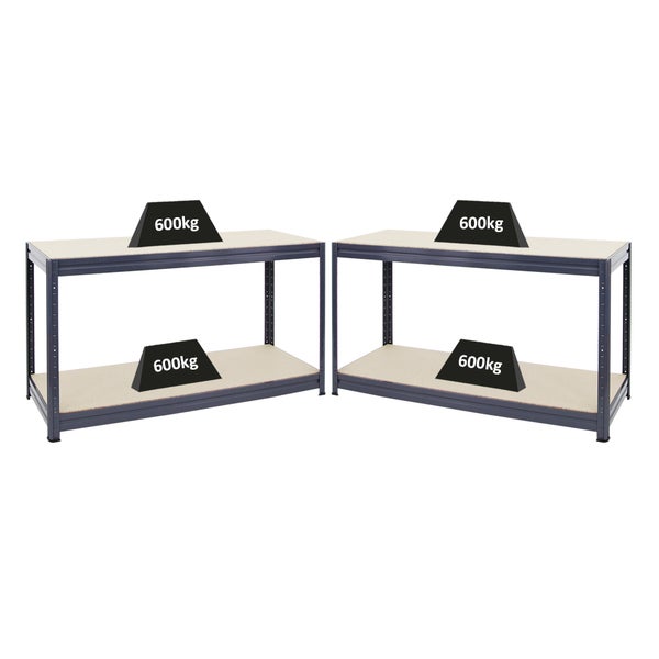 Die Werkbänke sind mittels eines Stecksystems ohne Werkzeug einfach und schnell aufzubauen. Pro Werkbank haben beiden Fachböden eine Stärke von 12 mm und sind in der Lage ein Gewicht von jeweils 600 kg zu tragen. Die Ebenen lassen sich in 50 mm Abständen in der Höhe verstellen.