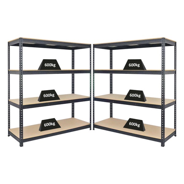 PROREGAL Mega Deal 2x Profi Schwerlastregal Bison HxBxT 200 x 180 x 60 cm 4 Fachböden Fachlast 600 kg Schwarz