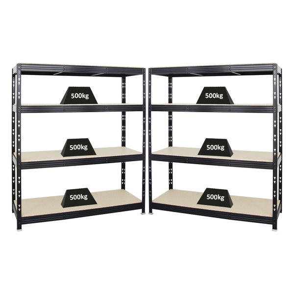 PROREGAL Mega Deal 2x Profi Schwerlastregal Rhino HxBxT 180 x 160 x 60 cm 4 Spanplatten-Ebenen 16mm Fachlast 500 kg Schwarz