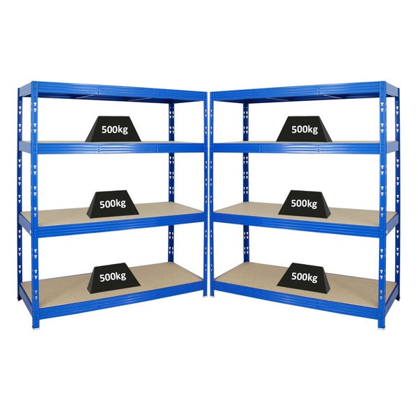 PROREGAL Mega Deal 2x Profi Schwerlastregal Rhino HxBxT 180 x 160 x 60 cm 4 Spanplatten-Ebenen 8mm Fachlast 500 kg Blau