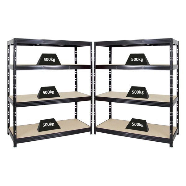 PROREGAL Mega Deal 2x Profi Schwerlastregal Rhino HxBxT 180 x 160 x 60 cm 4 Spanplatten-Ebenen 8mm Fachlast 500 kg Schwarz