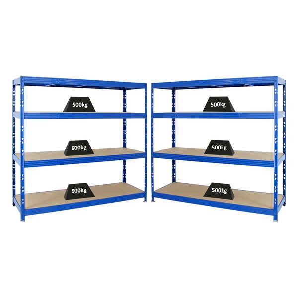 PROREGAL Mega Deal 2x Profi Schwerlastregal Rhino HxBxT 180 x 200 x 60 cm 4 Spanplatten-Ebenen 16mm Fachlast 500 kg Blau