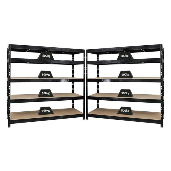 PROREGAL Mega Deal 2x Profi Schwerlastregal Rhino HxBxT 180 x 200 x 60 cm 5 Spanplatten-Ebenen 8mm Fachlast 500 kg Schwarz