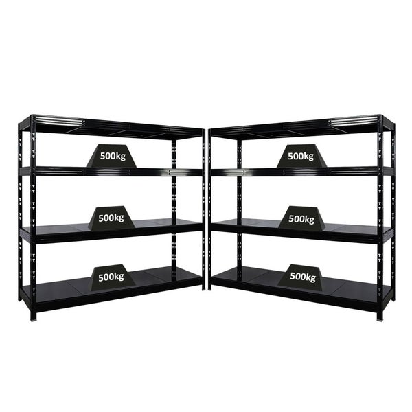 PROREGAL Mega Deal 2x Profi Schwerlastregal Rhino HxBxT 180x200x60cm 4 Stahlplatten-Ebenen Fachlast 500kg Schwarz