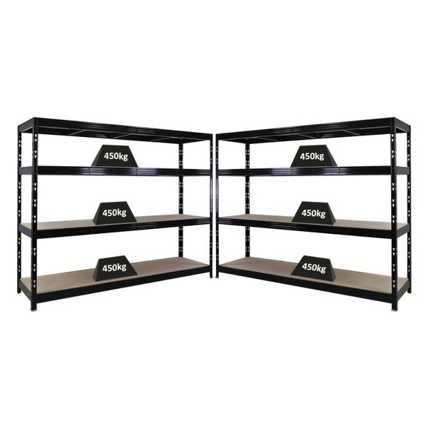 PROREGAL Mega Deal 2x Profi Schwerlastregal Rhino, HxBxT 180x240x60cm, 4 Spanplatten-Ebenen 8mm, Fachlast 450kg, Schwarz