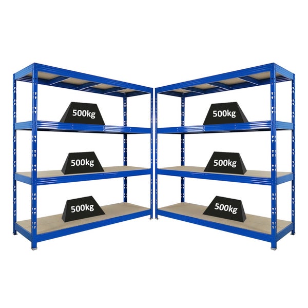 PROREGAL Mega Deal 2x Profi Schwerlastregal Rhino HxBxT 200x200x60cm 4 Spanplatten-Ebenen 8mm Fachlast 500kg Blau