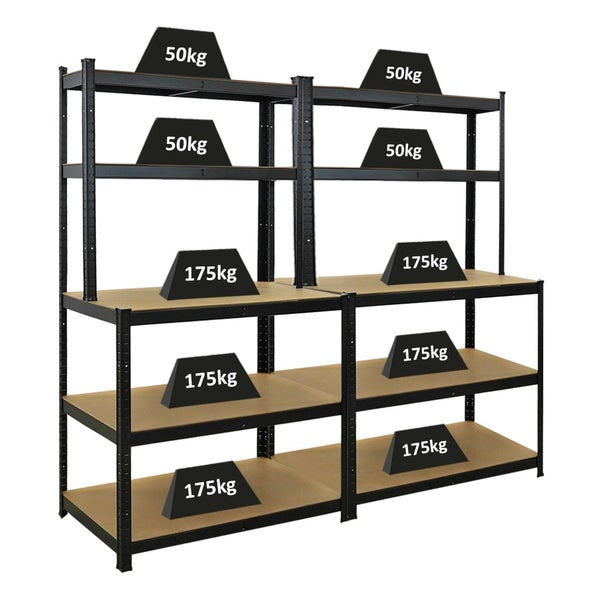 PROREGAL Mega Deal 2x Profi Werkbank GIANT BEAST HxBxT 180x100x60cm Fachlast 175kg Schwarz, Werkbankregal, SArbeitstisch