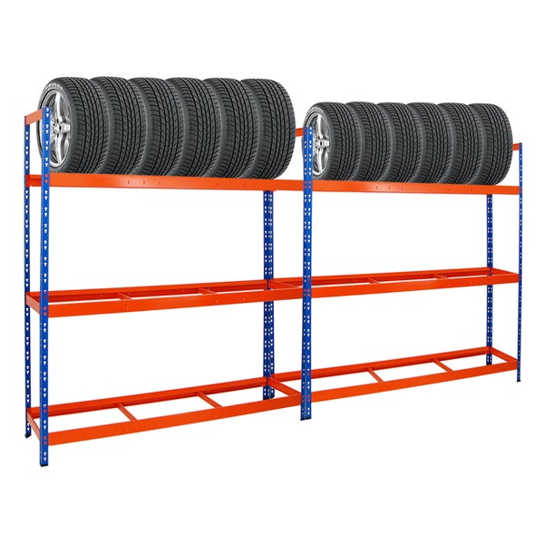 PROREGAL Mega Deal 2x Reifenregal Tiger XL HxBxT 200 x 180 x 45 cm Bis Zu 42 Reifen Blau-Orange