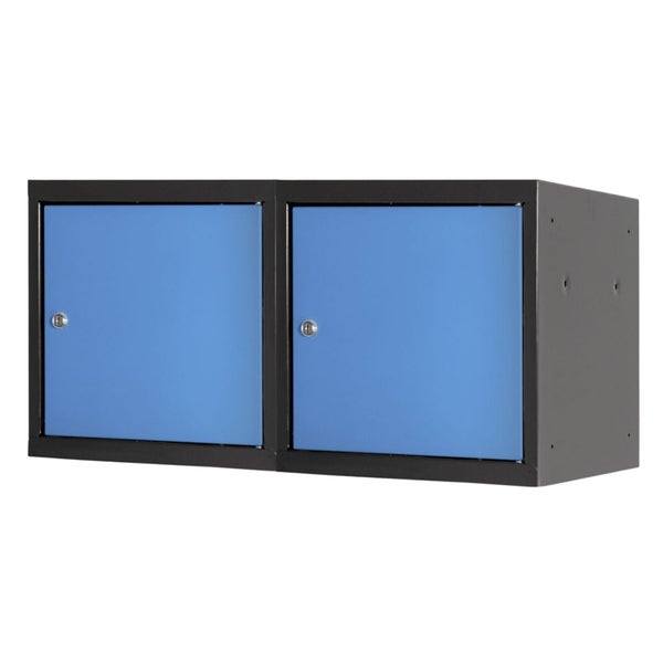 PROREGAL Mega Deal | 2x Schließfachwürfel Blocky mit Zylinderschloss + 2 Schlüssel | HxBxT 40x40x40cm | Anthrazit/Lichtblau | Tresor, Schließfach