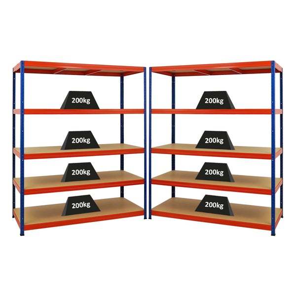 PROREGAL Mega Deal 2x Schwerlastregal Giant Elephant HxBxT 180 x 150 x 60cm Fachlast 200kg Blau-Orange