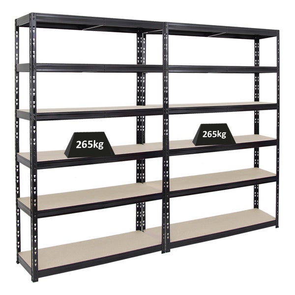 PROREGAL Mega Deal 2x Schwerlastregal Giant Tiger HxBxT 200 x 120 x 40 cm Fachlast 265 kg 6-Ebenen Schwarz