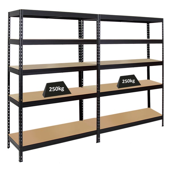 PROREGAL Mega Deal 2x Schwerlastregal Rivet HxBxT 180 x 120 x 45 cm Fachlast 250 kg Schwarz