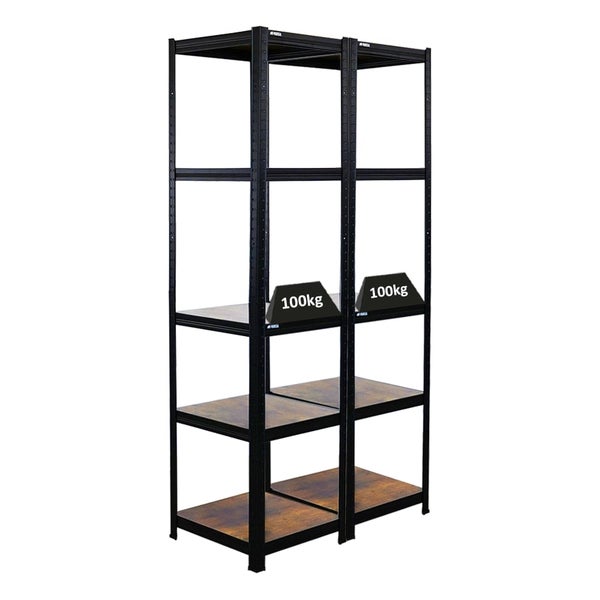 PROREGAL Mega Deal 2x Vintage Series Schwerlastregal Ragnar HxBxT 180x45x45cm Fachlast 100kg Vintagebraun-Schwarz, Steckregal, Garagenregal, Lagerregal