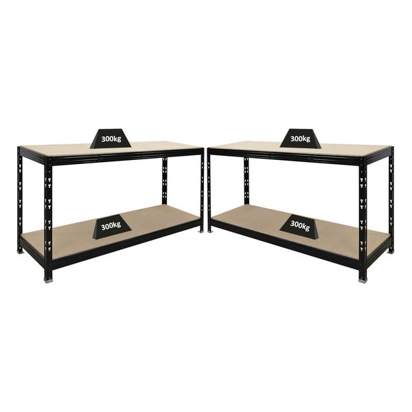 PROREGAL Mega Deal 2X Werkbank Tiger | 300 kg pro Fachboden | HxBxT 90x140x60cm | Schwarz