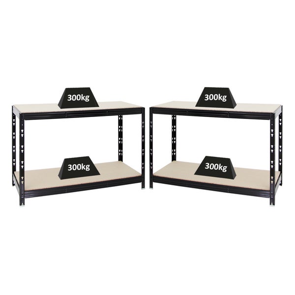 PROREGAL Mega Deal 2x Werkbank Tiger HxBxT 90 x 140 x 60 cm Fachlast 300 kg Schwarz