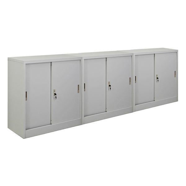 PROREGAL Mega Deal 3x Aktenschrank ELEPHANT mit Abschließbaren Schiebetüren HxBxT 90 x 90 x 40 cm 2 Fachböden Lichtgrau