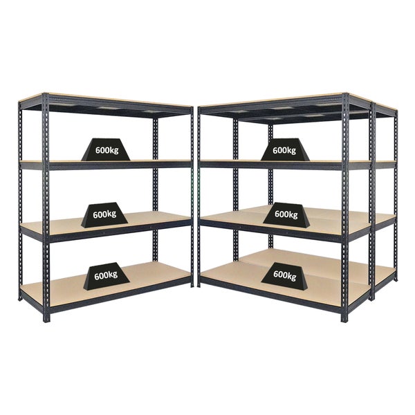 PROREGAL Mega Deal 3x Profi Schwerlastregal Bison HxBxT 200 x 180 x 60 cm 4 Fachböden Fachlast 600 kg Schwarz