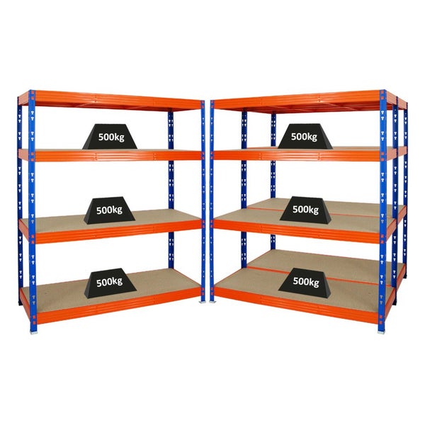 PROREGAL Mega Deal 3x Profi Schwerlastregal Rhino HxBxT 180 x 160 x 60 cm 4 Spanplatten-Ebenen 8mm Fachlast 500 kg Blau-Orange