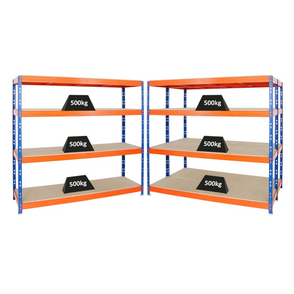 PROREGAL Mega Deal 3x Profi Schwerlastregal Rhino HxBxT 180 x 200 x 60 cm 4 Spanplatten-Ebenen 16mm Fachlast 500 kg Blau-Orange