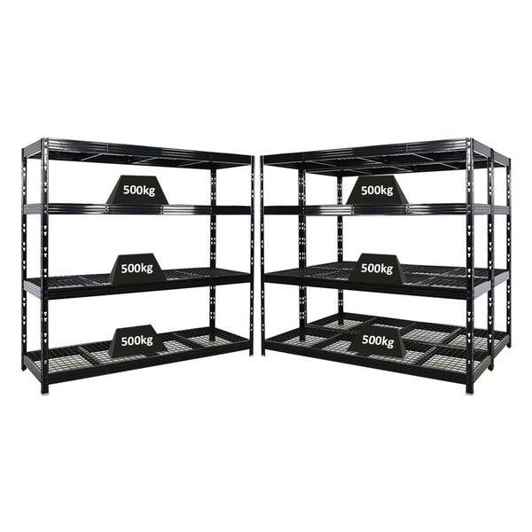 PROREGAL Mega Deal 3x Profi Schwerlastregal Rhino HxBxT 180x200x60cm 4 Gitterrost-Ebenen Fachlast 500kg Schwarz