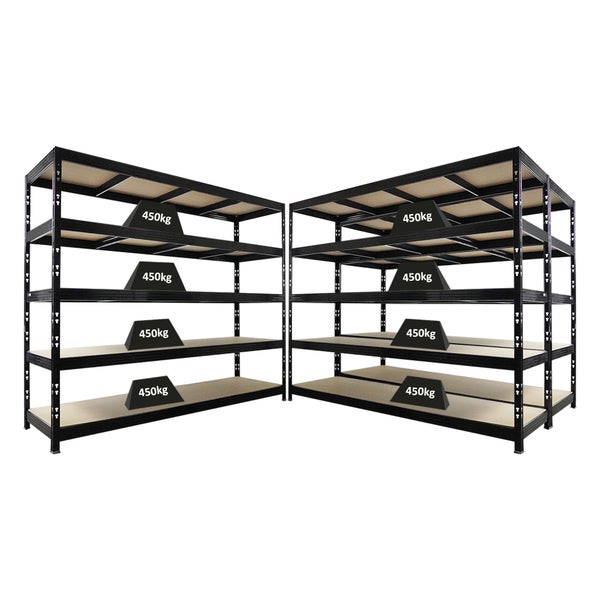 PROREGAL Mega Deal 3x Profi Schwerlastregal Rhino HxBxT 200x240x70cm 5 Spanplatten-Ebenen 8mm Fachlast 450kg Schwarz Steckregal Weitspannregal