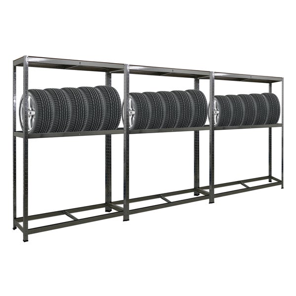 PROREGAL Mega Deal 3x Reifenregal RAGNAR HxBxT 180 x 120 x 40cm bis zu 8 Reifen auf 2 Ebenen + Ablage 265kg Fachlast Verzinkt