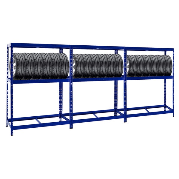 PROREGAL Mega Deal 3x Reifenregal Tiger mit Fachboden HxBxT 180 x 130 x 50 cm Bis Zu Insgesamt 36 Reifen Blau