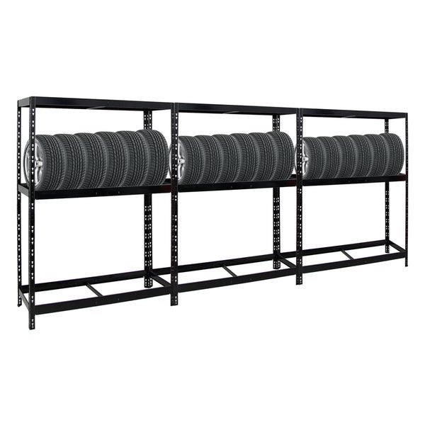 PROREGAL Mega Deal 3x Reifenregal Tiger mit Fachboden HxBxT 180 x 130 x 50 cm Bis Zu Insgesamt 36 Reifen Schwarz