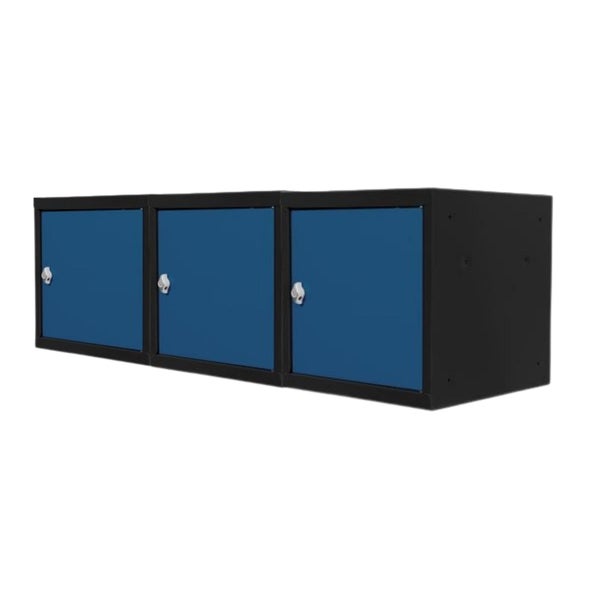 PROREGAL Mega Deal | 3x Schließfachwürfel Blocky mit Drehriegelschloss für Vorhängeschloss | HxBxT 40x40x40cm | Anthrazit/Enzianblau | Tresor