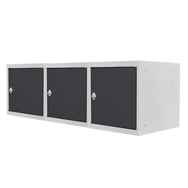 PROREGAL Mega Deal | 3x Schließfachwürfel Blocky mit Drehriegelschloss für Vorhängeschloss | HxBxT 40x40x40cm | Lichtgrau/Anthrazitgrau | Tresor