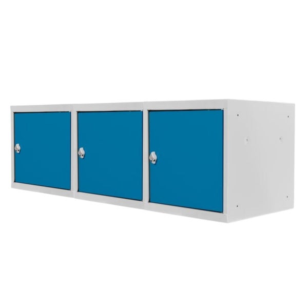 PROREGAL Mega Deal | 3x Schließfachwürfel Blocky mit Drehriegelschloss für Vorhängeschloss | HxBxT 40x40x40cm | Lichtgrau/Lichtblau | Tresor
