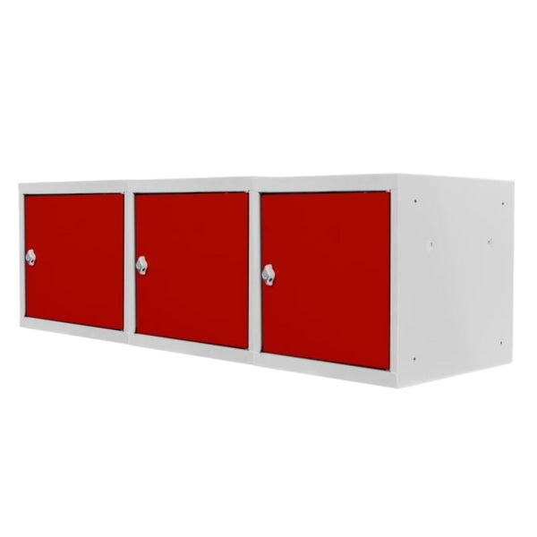 PROREGAL Mega Deal | 3x Schließfachwürfel Blocky mit Drehriegelschloss für Vorhängeschloss | HxBxT 40x40x40cm | Lichtgrau/Rot | Tresor, Schließfach