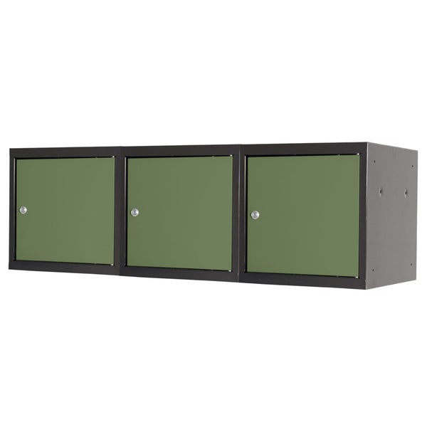 PROREGAL Mega Deal | 3x Schließfachwürfel Blocky mit Zylinderschloss + 2 Schlüssel | HxBxT 40x40x40cm | Anthrazit/Resedagrün | Tresor, Schließfach