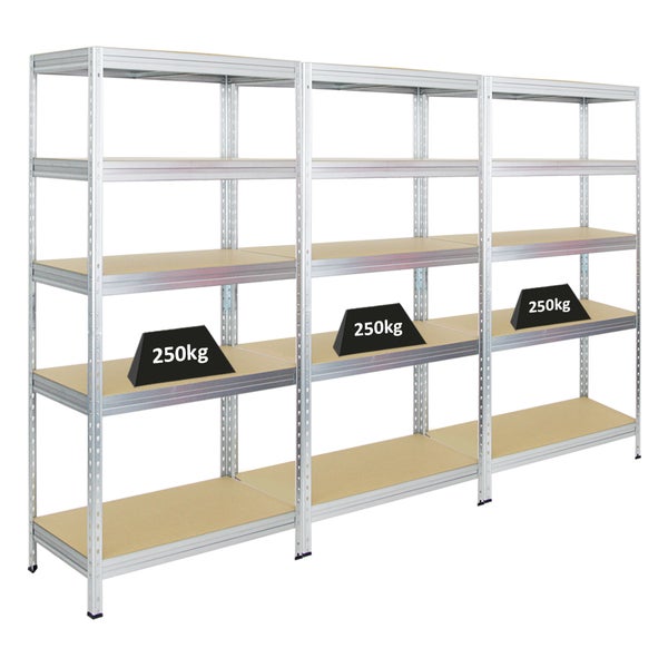 PROREGAL Mega Deal 3x Schwerlastregal Rivet HxBxT 180 x 90 x 45 cm Fachlast 250 kg Verzinkt
