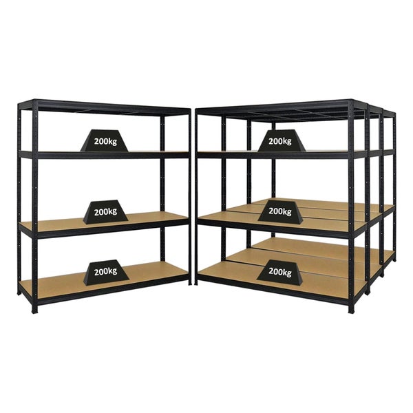 PROREGAL Mega Deal 4er-Set Schwerlastregal Giant Elephant 160x150x45cm mit 4 Ebenen Fachlast 200kg Schwarz