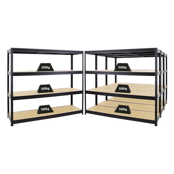 PROREGAL Mega Deal 4er-Sparset Profi-Schwerlastregal DINO HxBxT 180x180x60cm Fachlast 500kg Schwarz